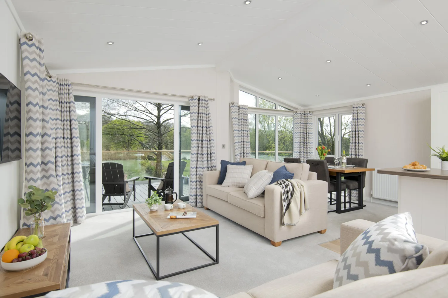 The two and three bedroom lodges sleep up to six with one double bedroom, one twin bedroom and some also have a sofa bed in the lounge. They are superbly appointed with the highest standard fixtures and fittings. And because all our lodges are solidly built to the same high standards as your home, they’re ideal for holidays even on the coldest of days.