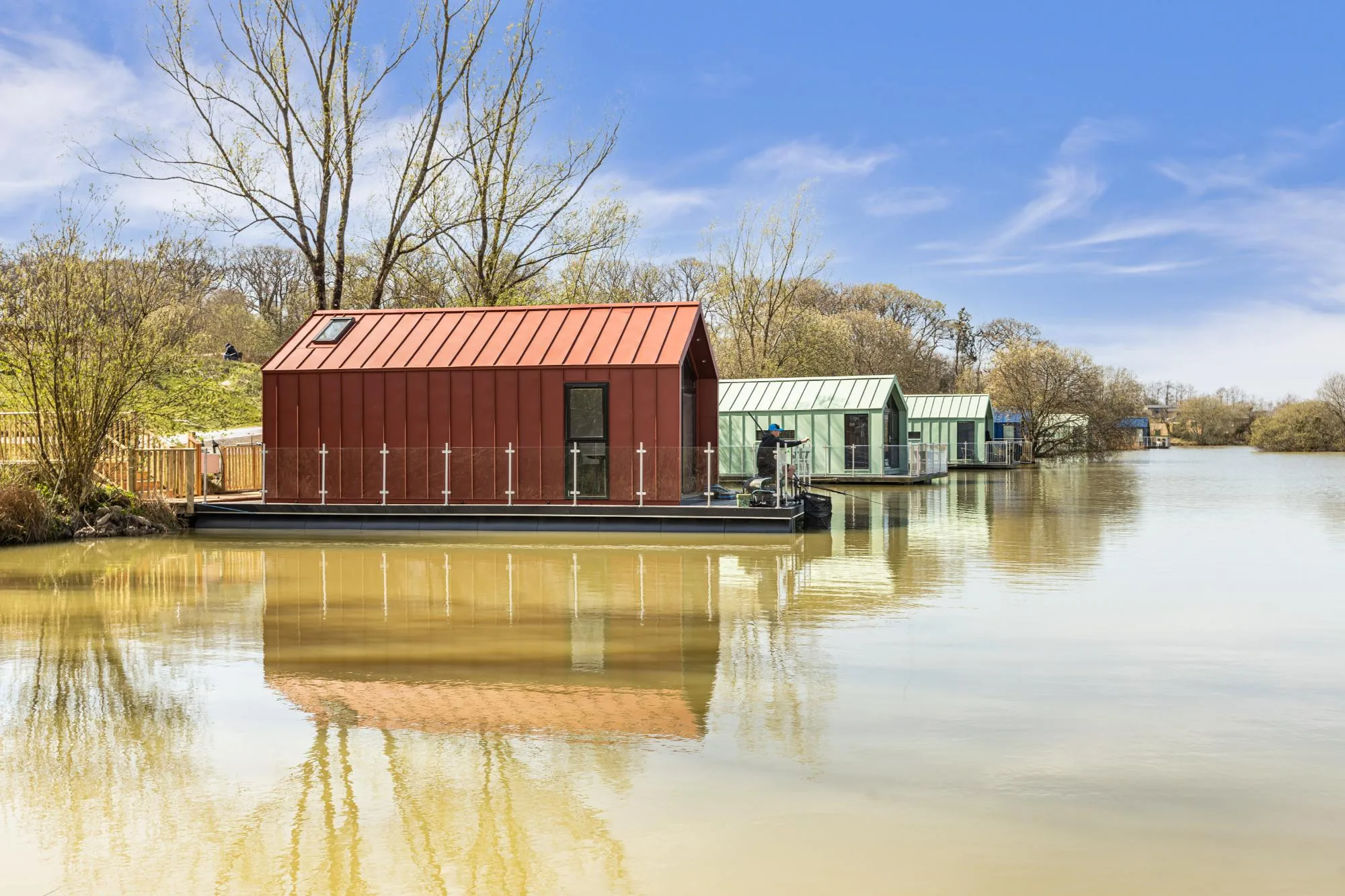 Our Floating Lodges combine all the excitement and romance of a holiday on the water with the convenience of a traditional lodge. Securely moored in our attractive, waterside setting they’re easily reached by fixed pontoon walkway, with all the estate’s facilities in easy reach and all the attractions of the countryside and coast on your doorstep. Enjoy stylish, single floor living, with an open plan bedroom area, living room, kitchen and dining area, along with private decking complete with seating, and views over the lake.