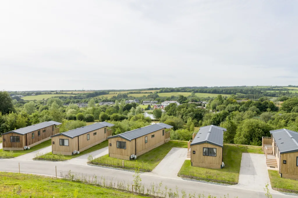 Our collection of Willow Holiday Homes are 38ft long and 12ft wide, with private fully enclosed decks (perfect for keeping children and pets safe) and covered roofs to ensure you can take in the view all year round. There is the option to book one with a private outdoor sauna and ice bath on the terrace to soak up the sights. These Holiday Homes can be found nestled into the valley facing North across the resort, approx 300m walk from our main facilities along tranquil footpaths, beside lakes, and through wooded areas with something new to discover around every corner.