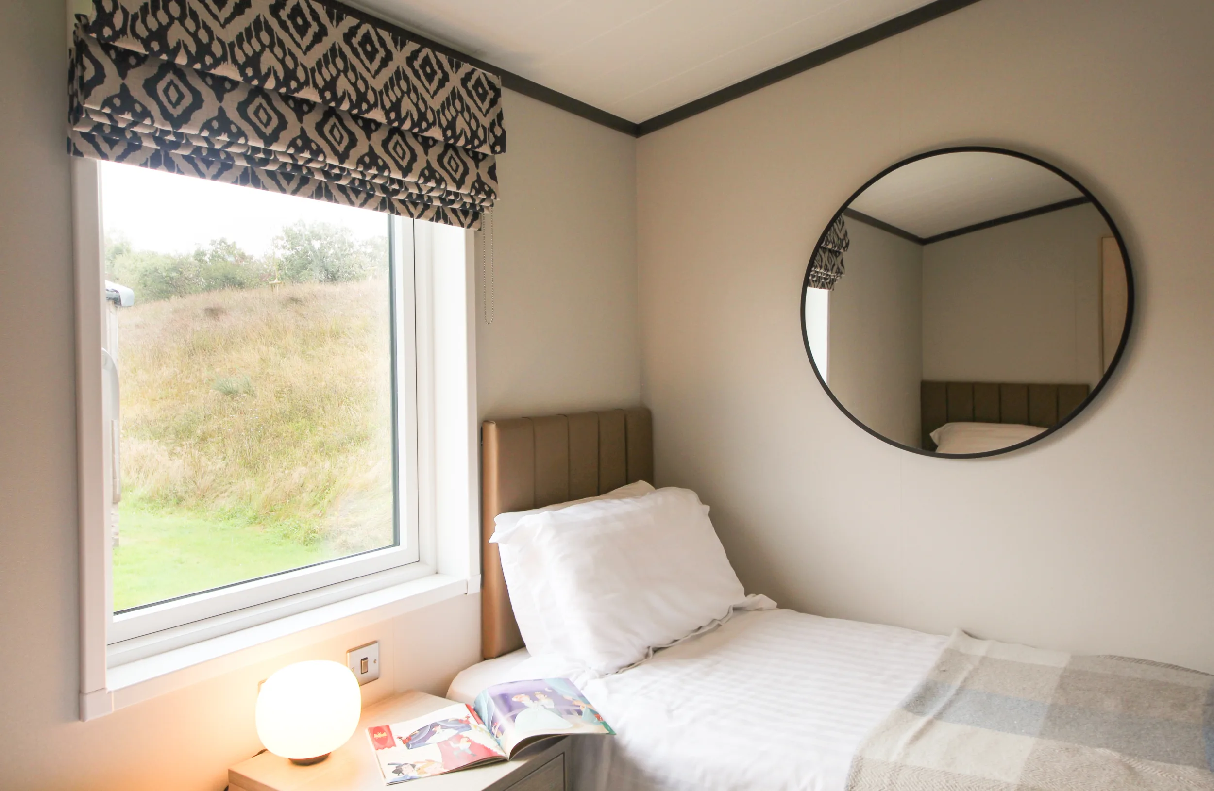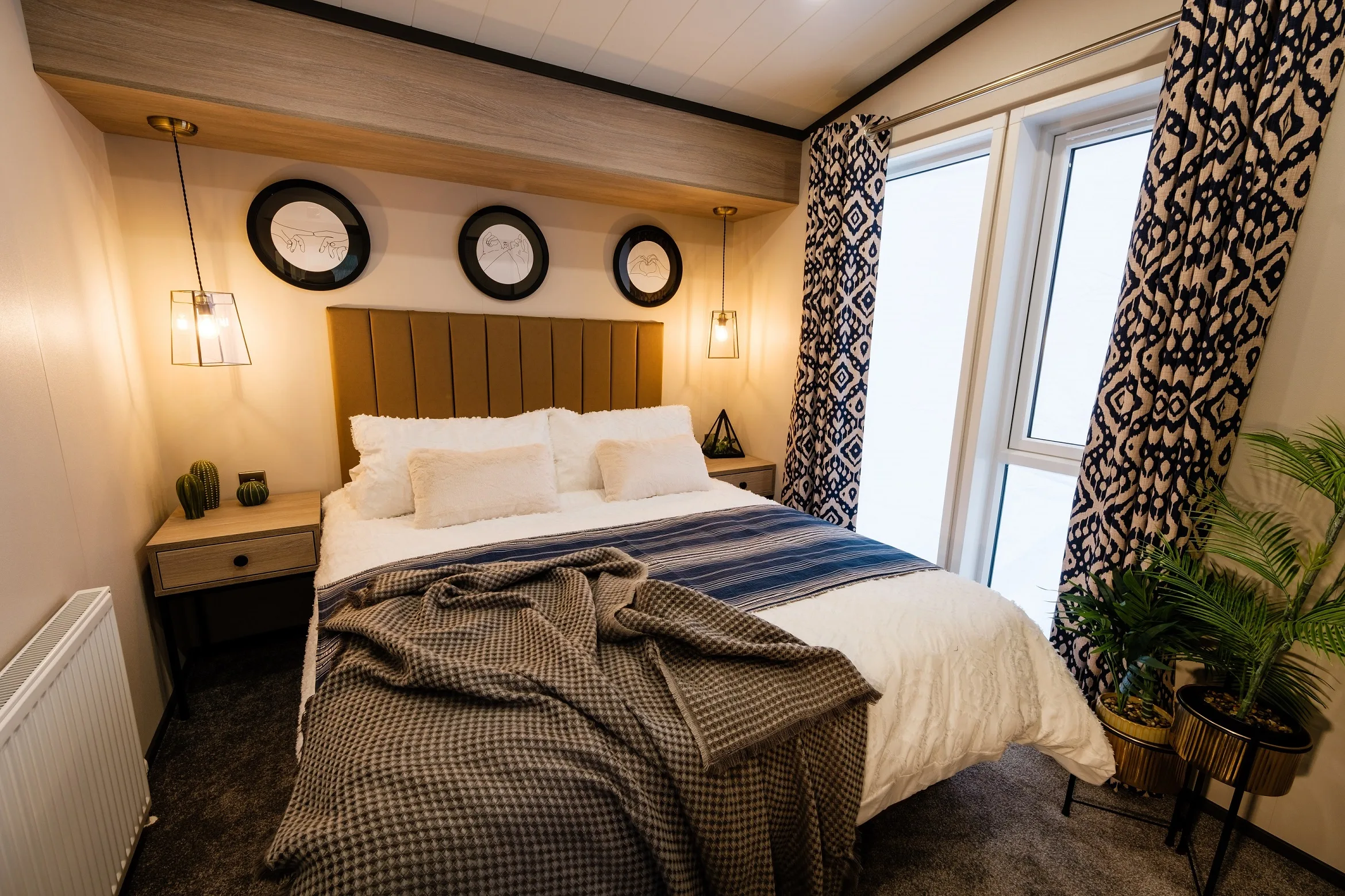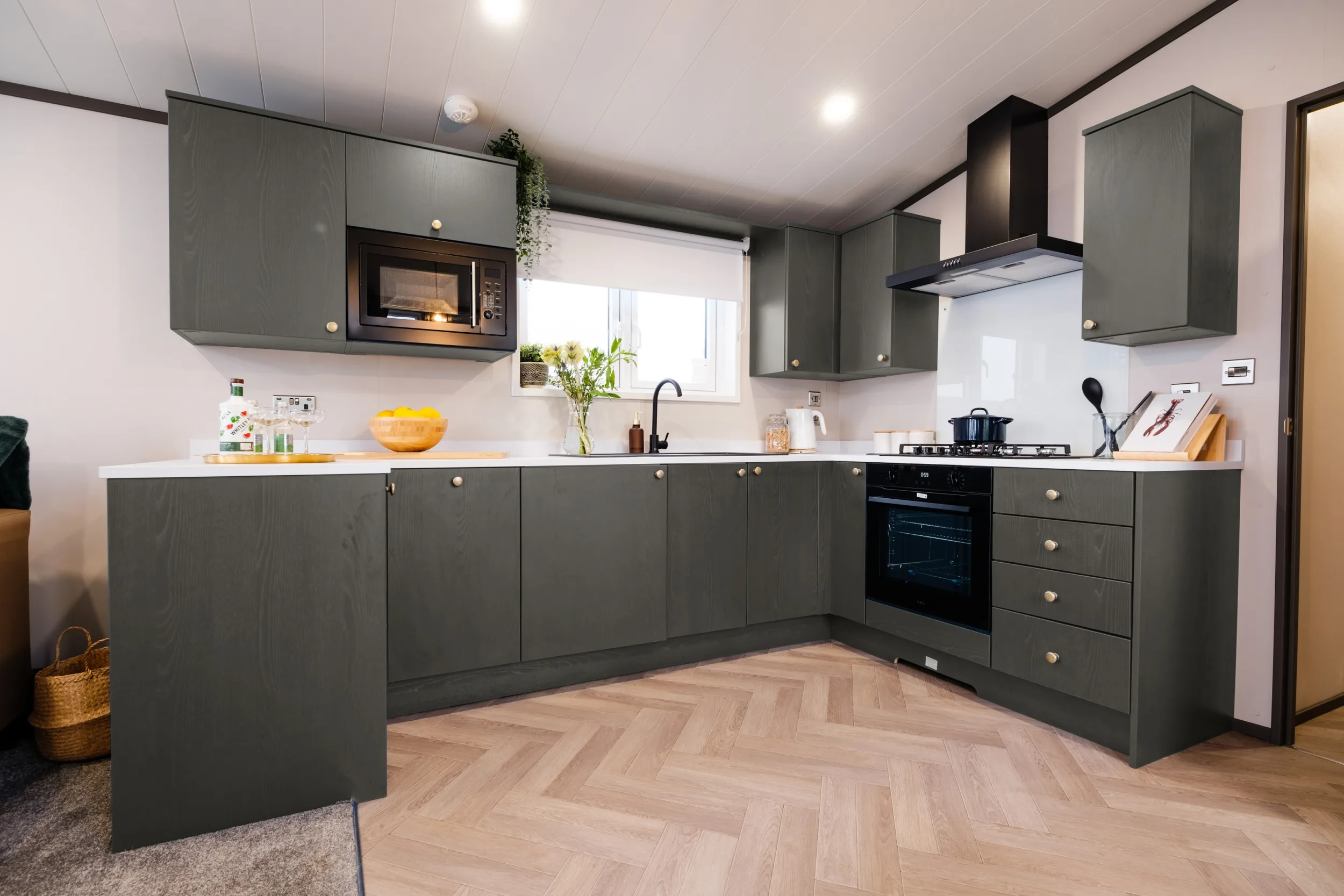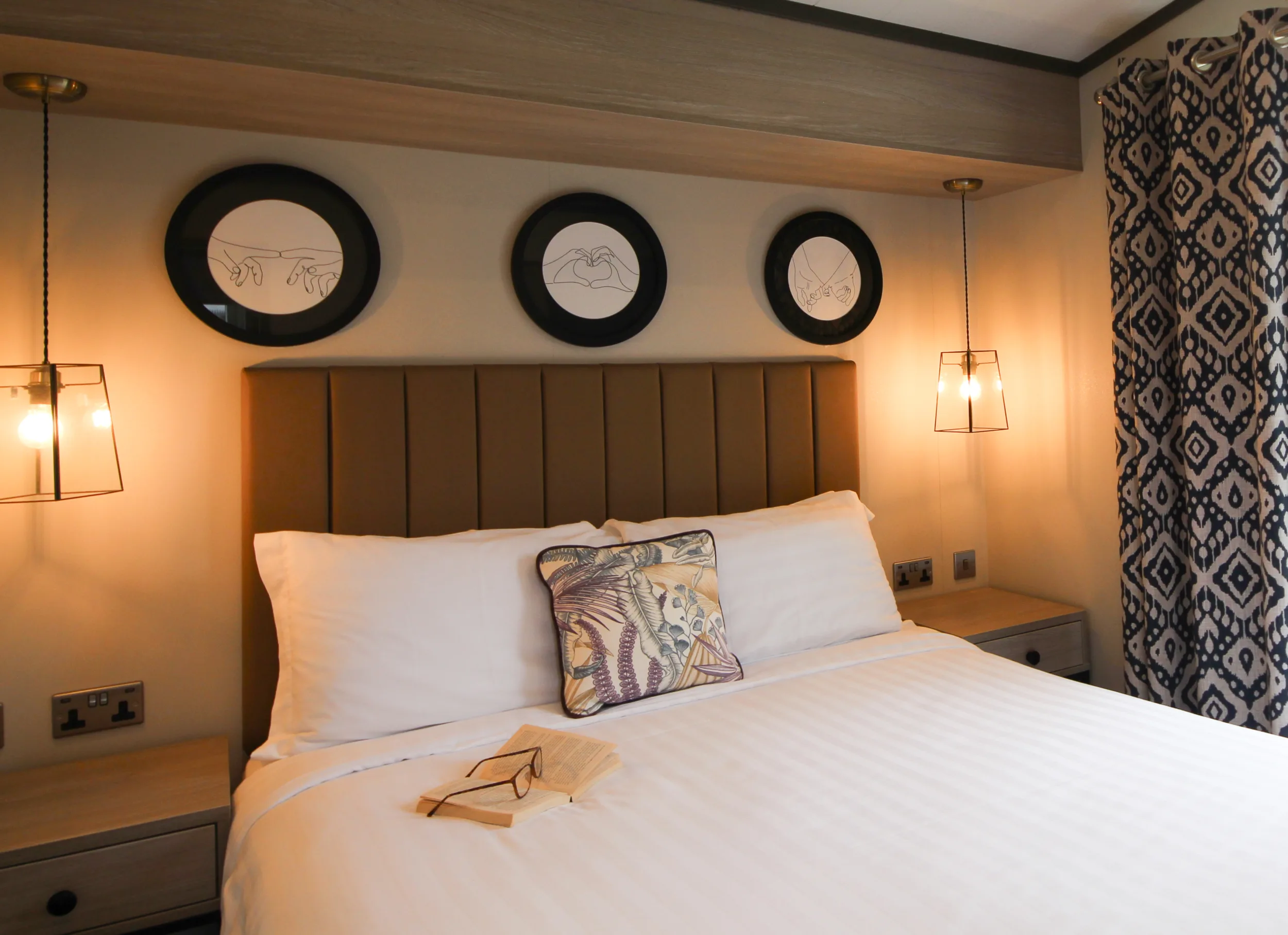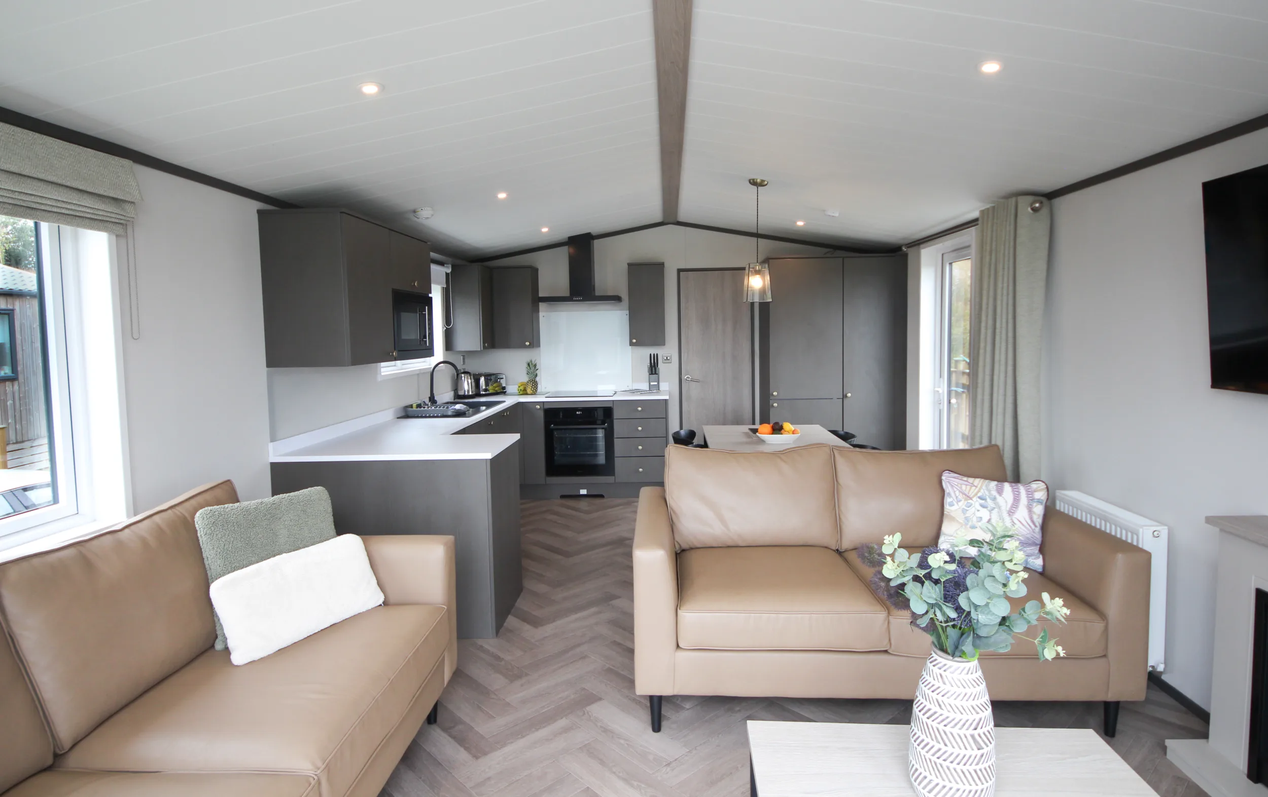 With an open plan living space that has clearly defined kitchen and living areas, the Meadows Holiday Home has a contemporary design that’s warm and welcoming, with Moroccan-inspired décor and stylish black accessories. Designed for up to four guests, there is plenty of room to spread out and feel relaxed in front of the TV, or gather round the dining table for home-cooked meals and takeaways. When the weather’s good – and it usually is in Devon – spill onto the decking, where outside seating and a four-person hot tub await.