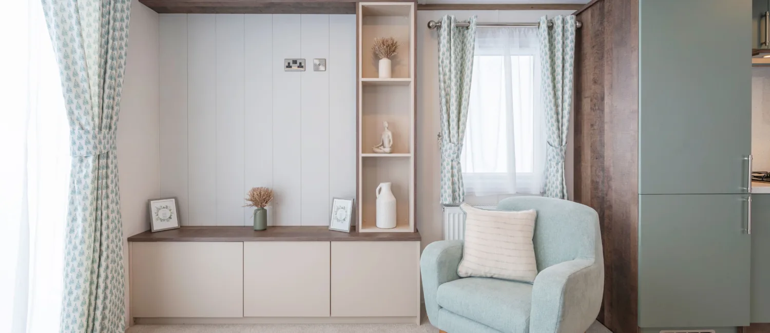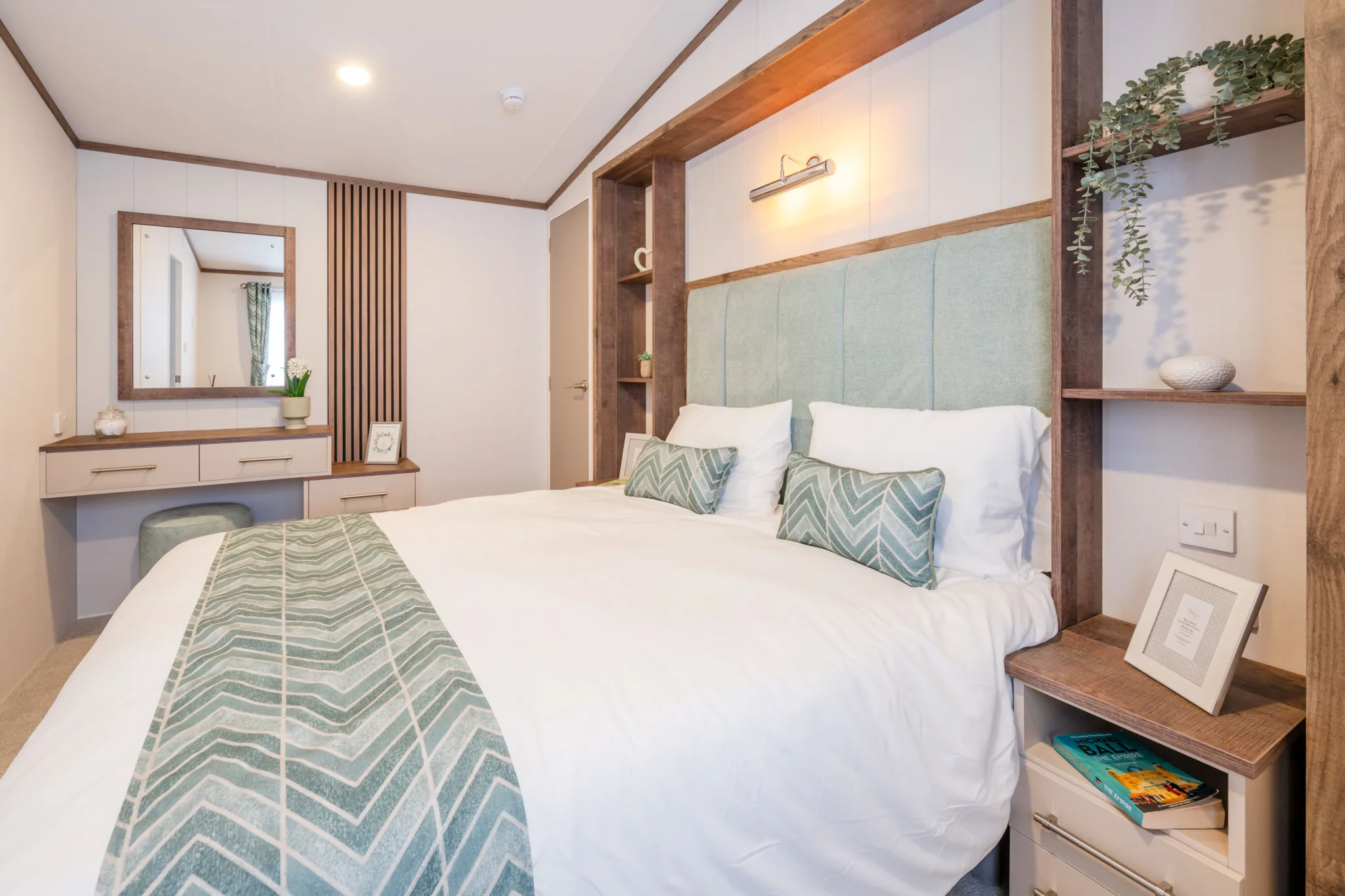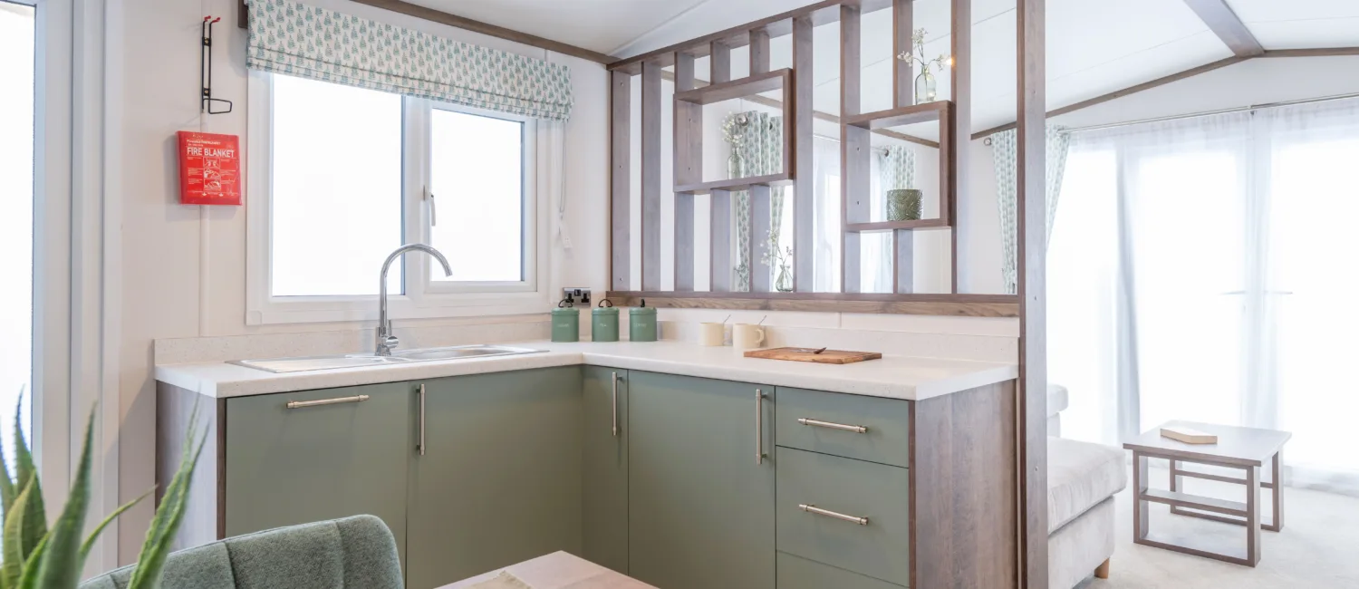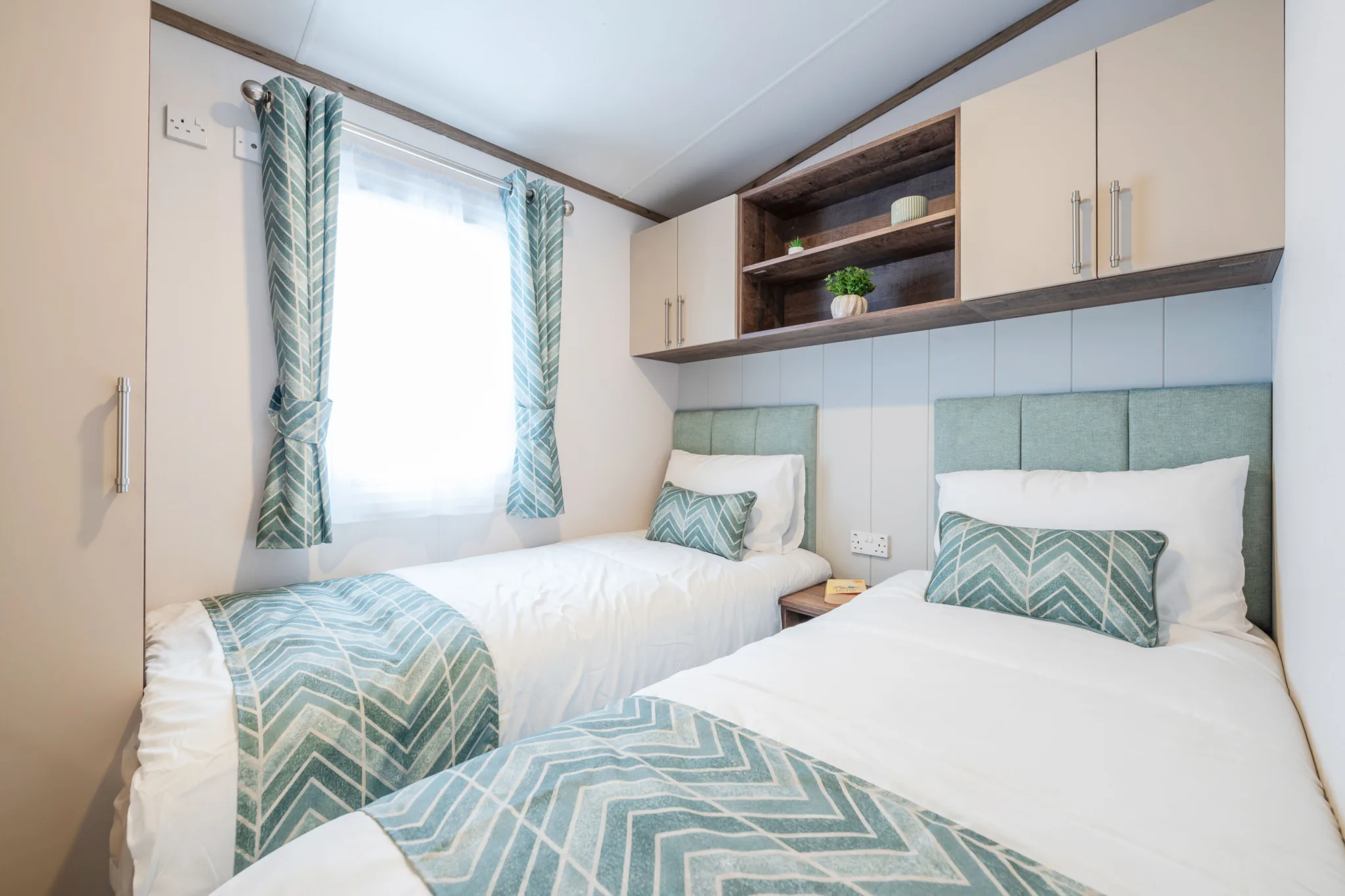 Set in a peaceful spot on resort, the Oak Holiday Home offers a modern and comfortable base for your next Devon escape. Measuring 40ft by 14ft, this spacious two bedroom hone-from-home is designed with a popular centre lounge layout that creates the perfect balance of privacy and togetherness.