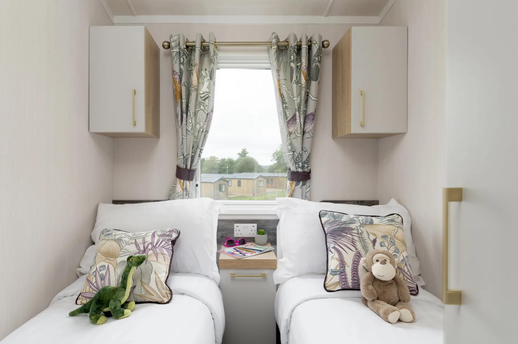 Please note: All imagery shown is a representation only. Style, decor and exact views vary by lodge. This imagery is for the two bedroom holiday home – the three bedroom home has a slightly smaller lounge / kitchen and a smaller main bedroom.