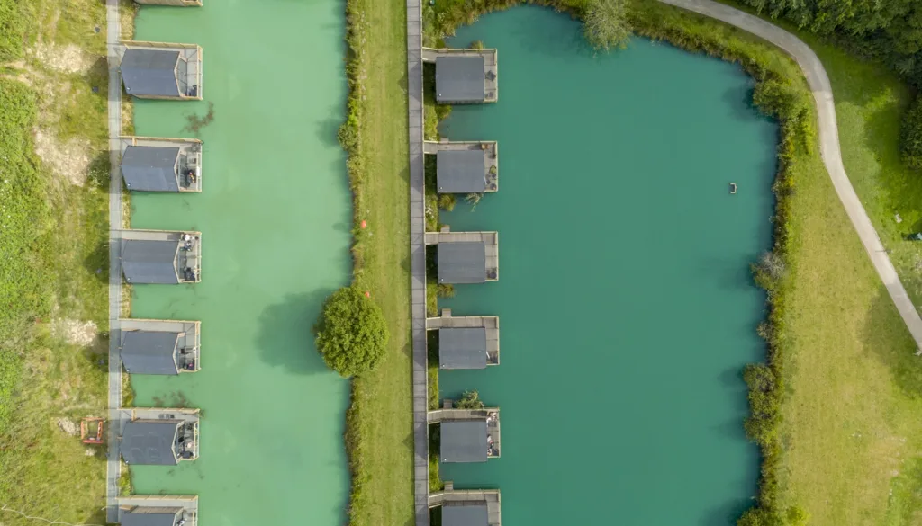 Your Pod is perched on the water’s edge, with an entire glass wall to give you amazing views over the lake. There’s a fishing gate so you can fish straight from your decking too (the fishing gates can be securely locked when not in use.)