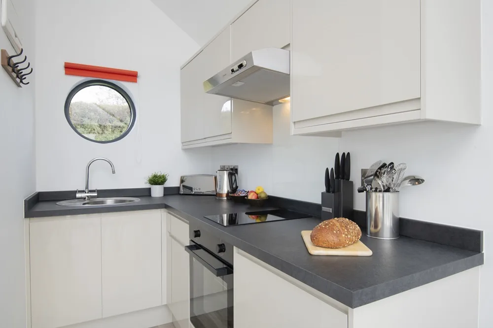 The Lake Pod Plus enjoys a bigger footprint than the standard Lake Pod and offers stylish studio accommodation with the comforts and convenience of a traditional lodge. Perched right on the water’s edge, they’re easily reached by well-marked pathways. All the estate’s facilities are within easy reach, with just a gentle incline from the main area to the pod, whilst maintaining the tranquillity you want from waterside accommodation. Enjoy simple yet stylish single floor living, with an open plan living and dining area plus fully fitted kitchen complete with standard size oven, microwave, hob and fridge (with freezer compartment.) The bathroom has a walk-in shower, while the giant glass wall and private decking provide fantastic views over the lake.