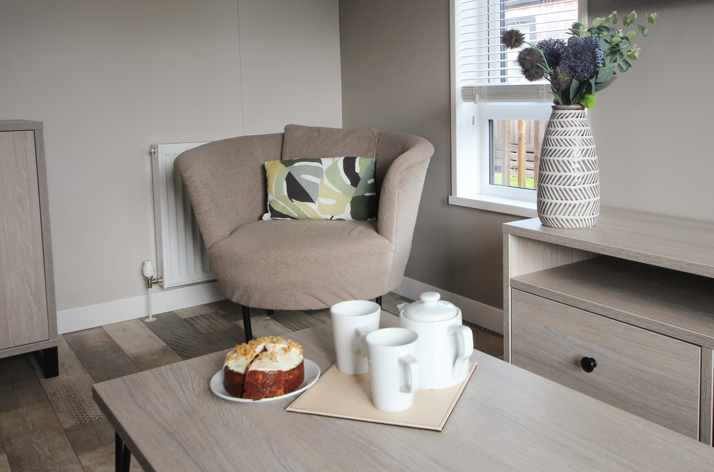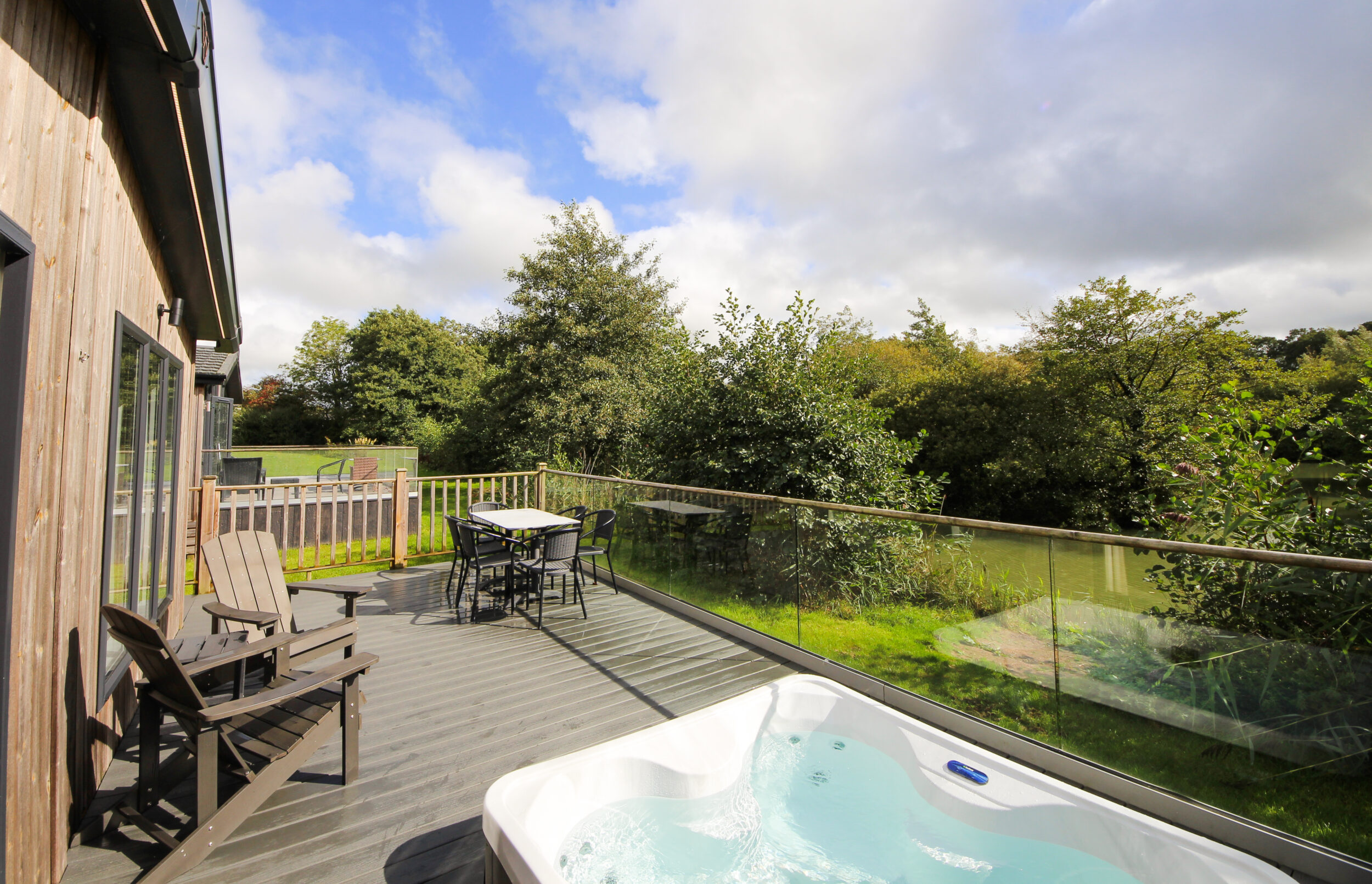 This Deluxe Lakes-Edge Lodge provides guests with uninterrupted views over our stunning fishing lakes whether you are sat in your hot tub, sipping champagne on the decking or relaxing in the lounge and staring through the large glass doors. The interior offers sophisticated living for all to enjoy, it’s perfectly proportioned with a modern, yet homely feel.