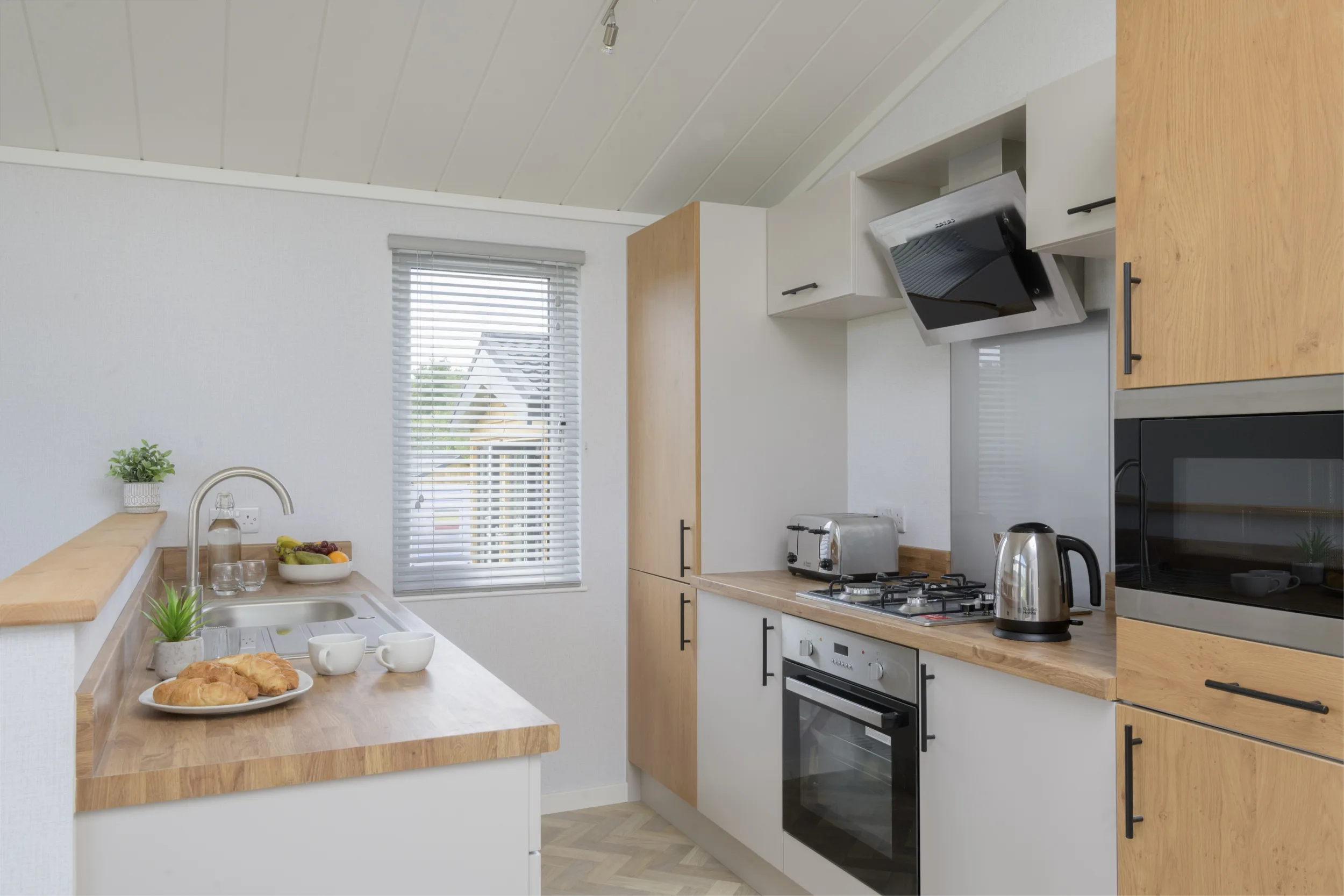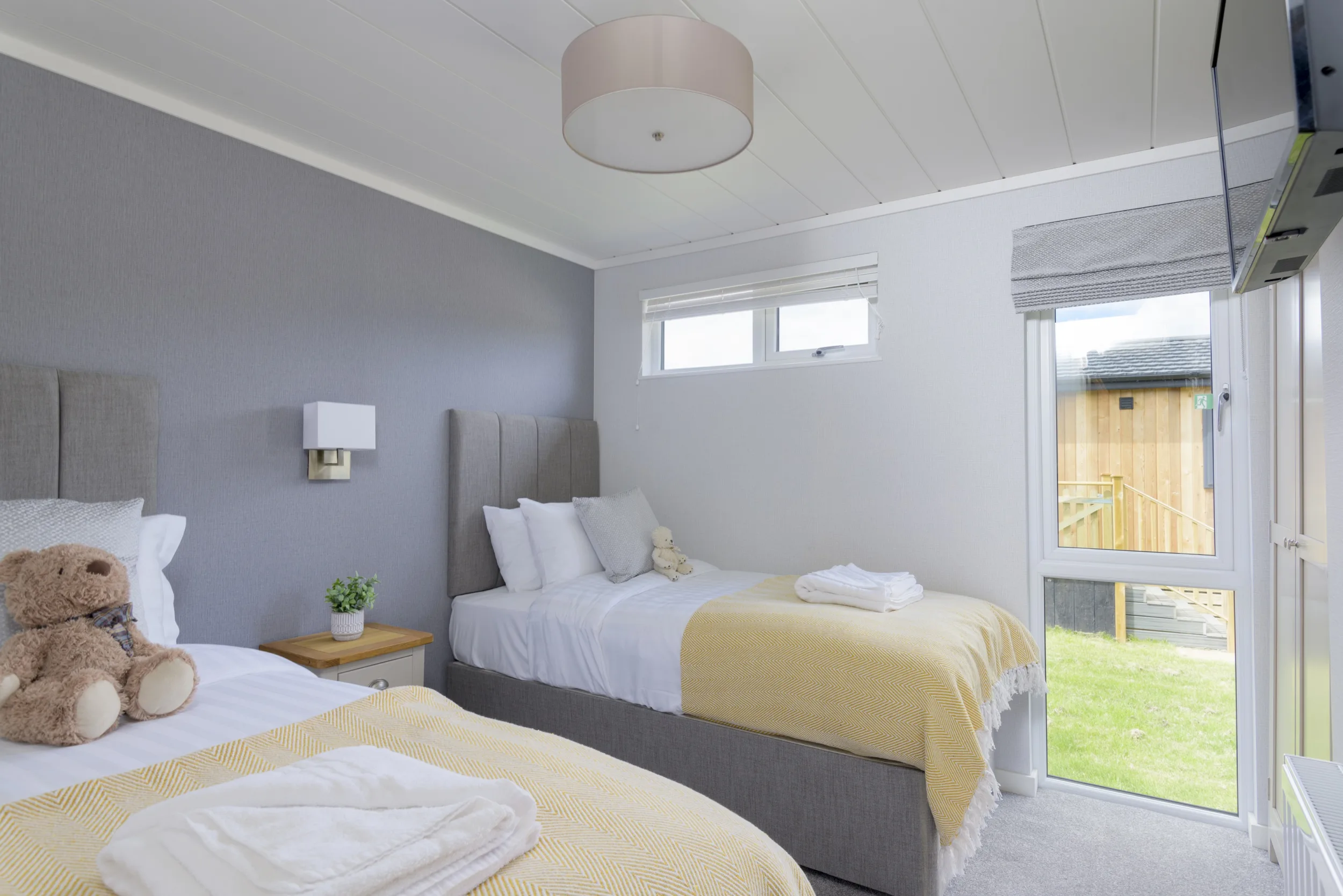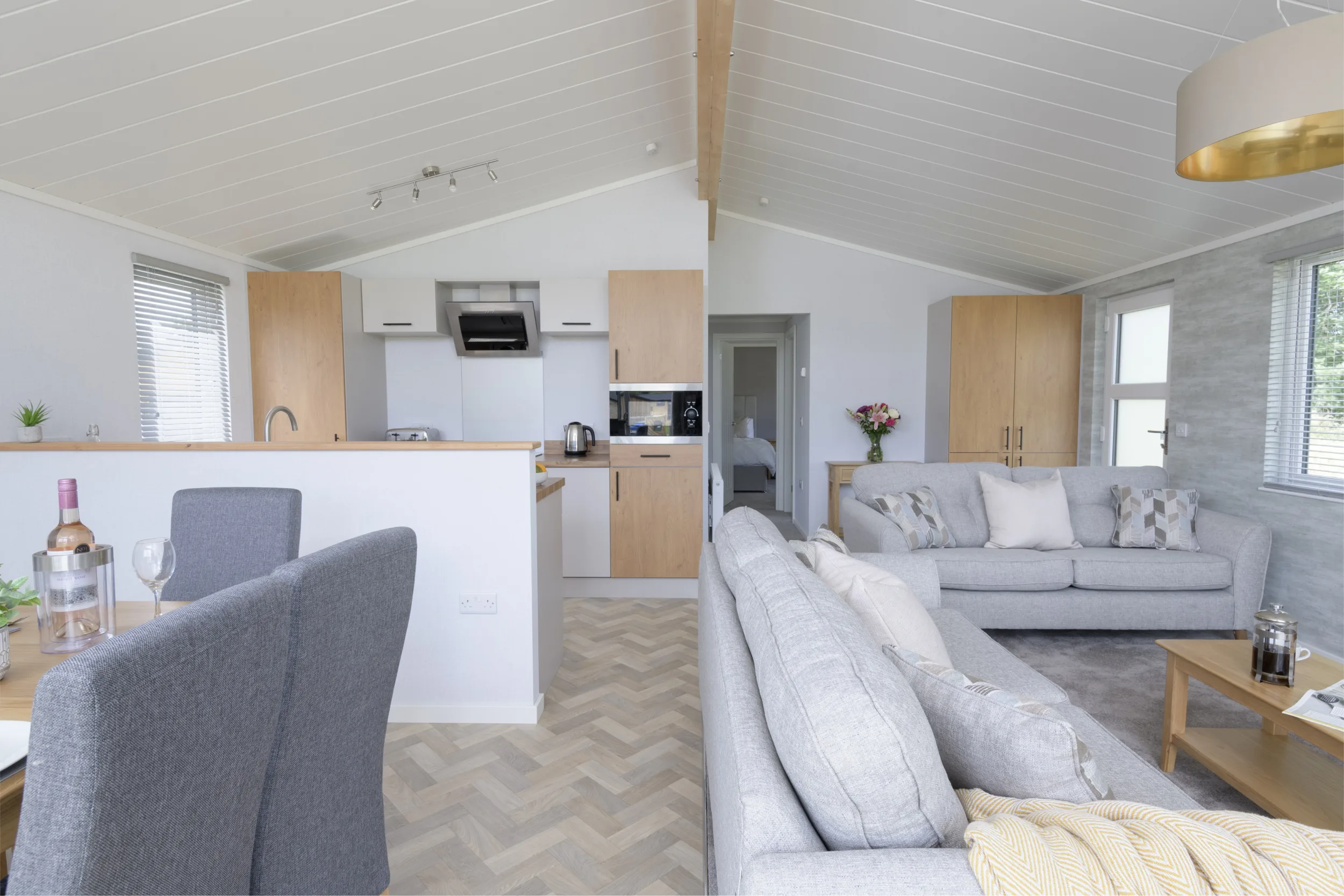 Our Deluxe Lodges offer an expansive, luxurious retreat with breathtakingly gorgeous views of the resort and valley, best enjoyed from your private deck. Inside, you’ll find a beautifully appointed double bedroom with an en-suite, a spacious twin bedroom, and a family bathroom with a full bath. The spacious, open-plan kitchen is fully integrated, making it perfect for effortless entertaining.