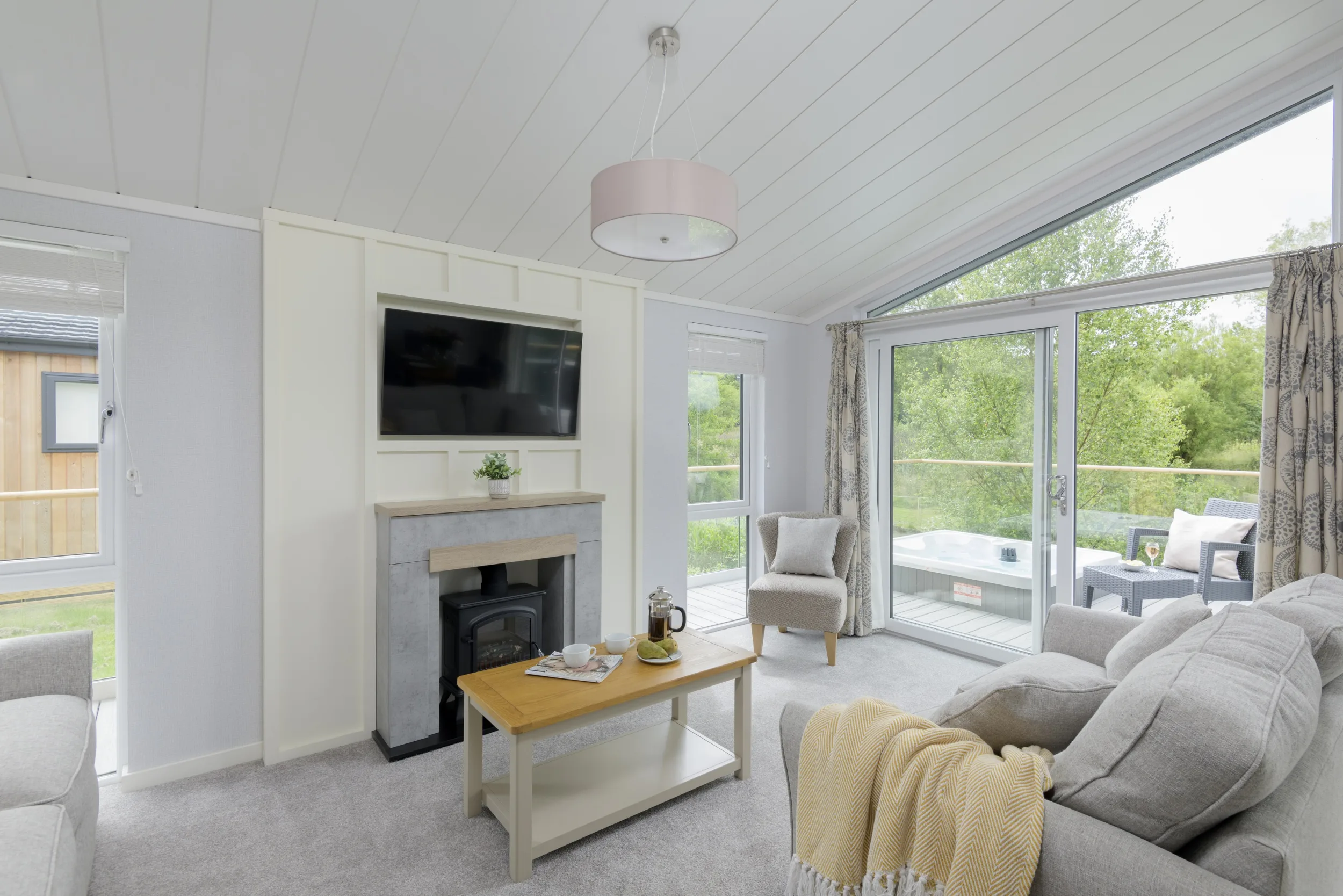 Designed for comfort year-round, the lodge is fully insulated with central heating providing a cosy sanctuary in winter and a sunlit haven during the summer months.
