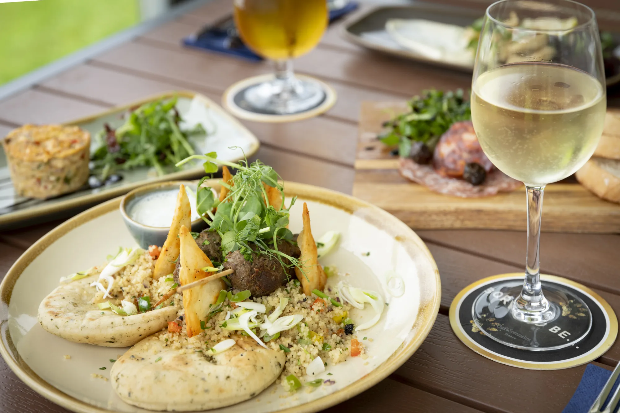 Enjoy a warm welcome when you join us for lunch, dinner or just a refreshing drink or two at the Apple and Grape. Take in the sweeping views of the estate from our Al Fresco dining area, featuring a retractable roof and glass walls to provide you with the perfect Indoor/Outdoor dining experience.