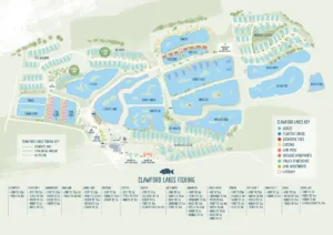 Fishing on the ‘Caribbean’ looking lakes is for Lake Pod residents only. In Pod Lake 1 there