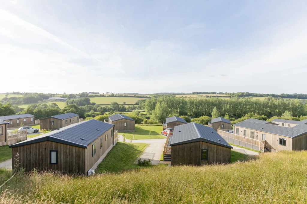 Luxury three bedroom lodges with one master bedroom with king size bed, one double room and one twin room. Perfect for families and groups of friends.